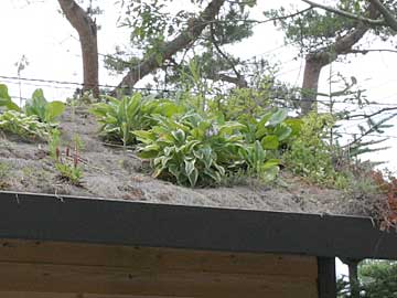 屋根の上でホスタが育っているのを見てちょっと驚き。きっと夏は涼しくていいでしょうね。我が家でも、仕事場の上のテラスででもこのアイデアは活かせそうです。