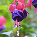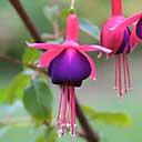フクシアの花のタイプは大きく分けて4種類、シングル(一重) ・セミダブル(半八重)・ダブル(八重)・そしてトリフィラタイプ (細い筒状の花をつけるもの)があります。大きさも、長さ1cm弱、直径5mm程度の小さな原種から、直径10cm以上にもなる巨大な八重咲きの交配種まであります。バラエティに富んだ花のタイプもフクシアの愉しみの一つです。