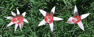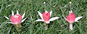 品種はワッサニンフです。通常見られる花は右側の萼片が4つのものですが、真中のように5つに分かれているものが時々あります。 左側はなんと9つに萼片が分かれています。雌しべも短く、雄しべの数も通常よりかなり多くなっています。詳細については不明ですが、帯化の一種ではないでしょうか?